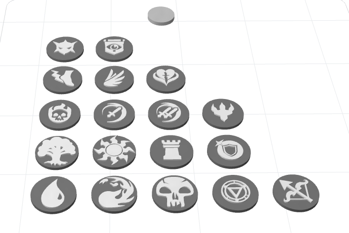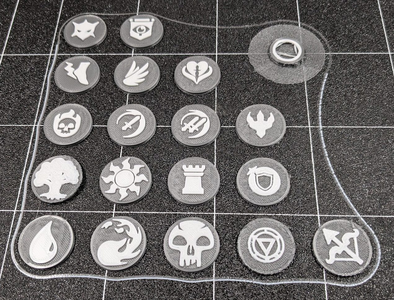 Since I have a 3D printer, I figured I'd try making some tokens that have a mana or ability symbol to help me keep everything straight.