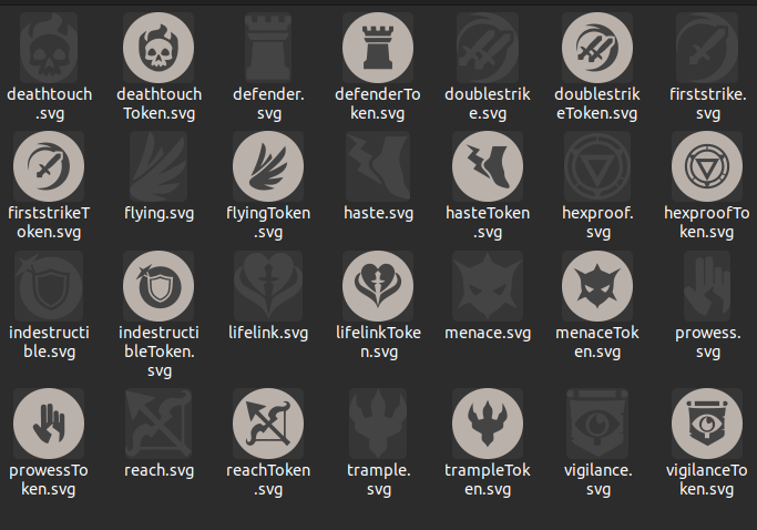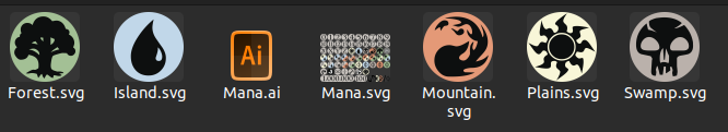 Starting with those, I utilized Inkscape to capture the individual mana symbols and create a larger token SVG from the abilities I wanted