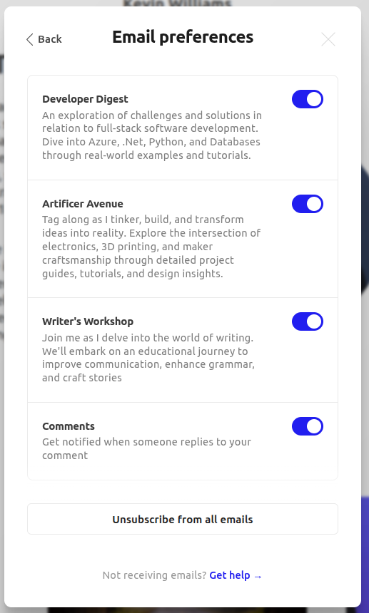 Since this is a large deviation from what I worked on originally, they'll be published to a separate newsletter called "Writer's Workshop". Any technology and programming related blogs will continue to be published to "Developer Digest" and my 3D printing / project oriented posts will go to "Artificer Avenue"