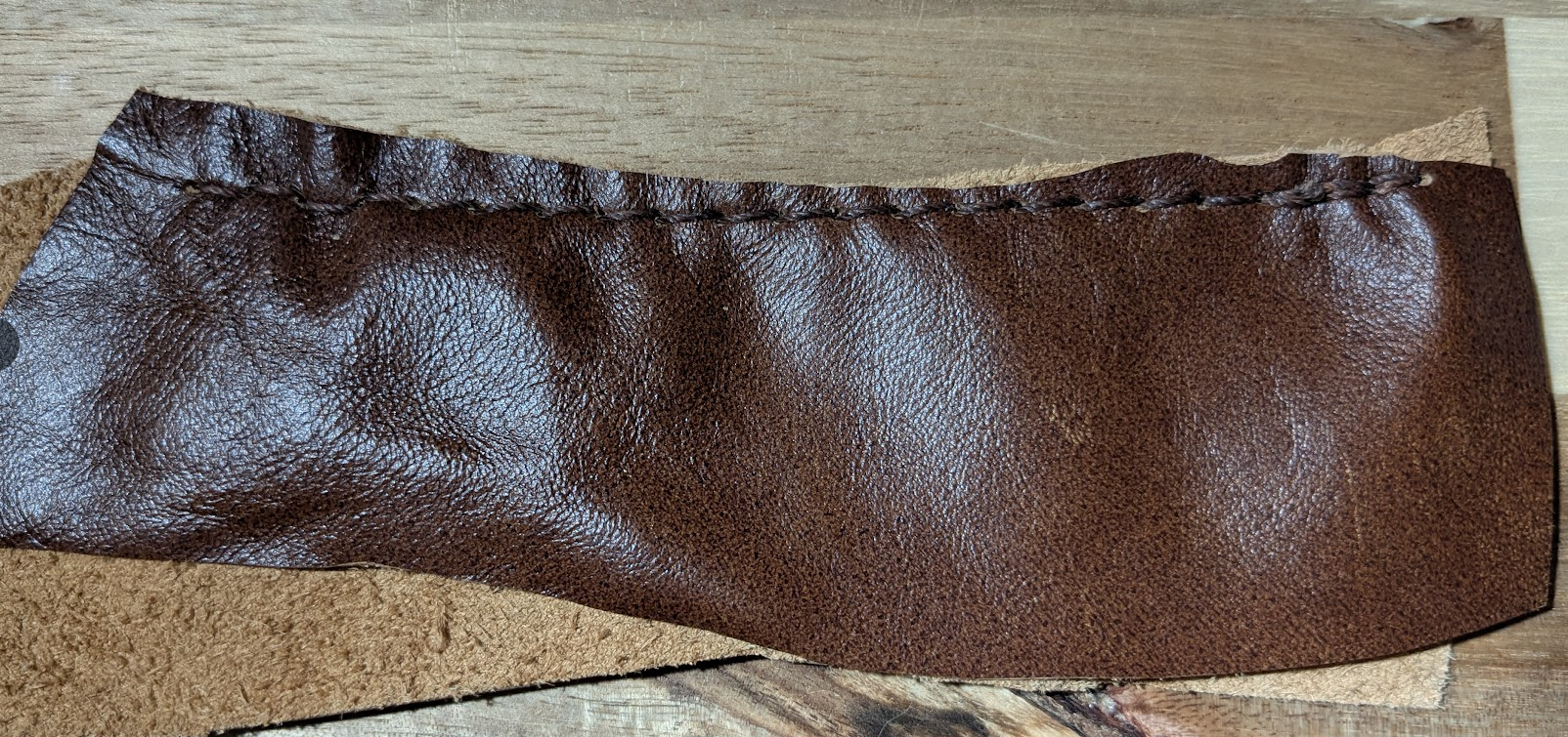 Day three consisted of additional saddle stitch practice - this time using thicker leather and the edge groover to keep my lines straight.