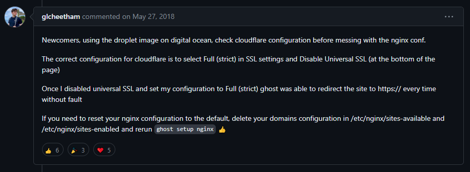 A simple fix for redirect errors when self-hosting Ghost on Digital Ocean while using Cloudflare for DNS