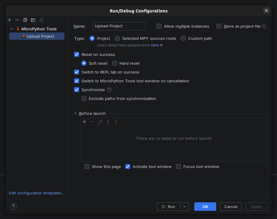 Next, you need to create a configuration that allows you to upload your files to the Pico